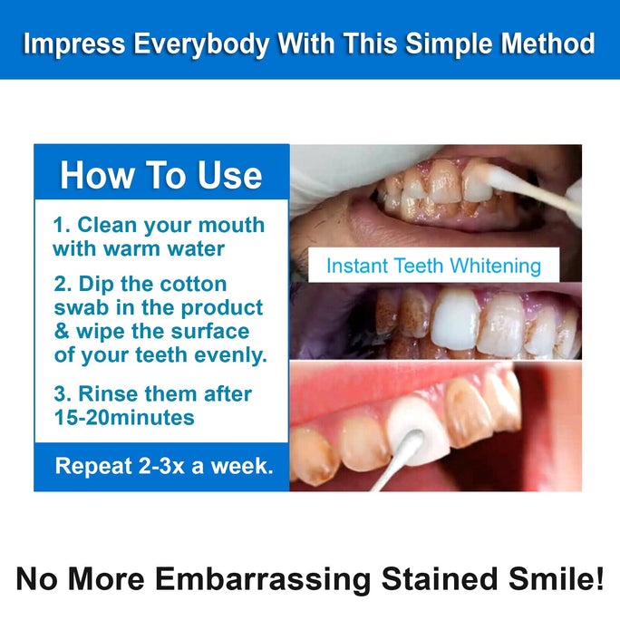 - INSTANT RESULTS - Teeth Whitening Liquid is instantly effective, you will be able to clean away year of stains, discoloration and plaque in just a few seconds