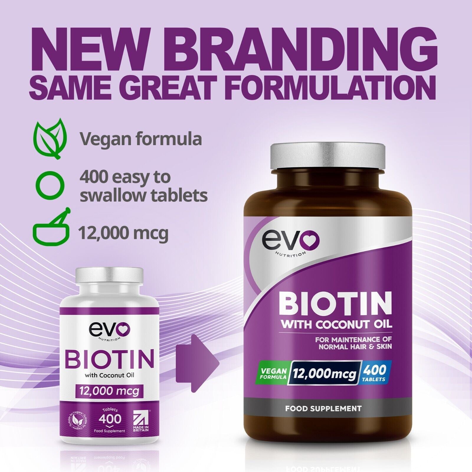 Biotin Hair Growth Supplement 12,000mcg with Coconut Oil | 400 High Strength Biotin Tablets for Hair - 13 Month Supply | Vitamin B7 | Supports Normal Skin & Hair Growth