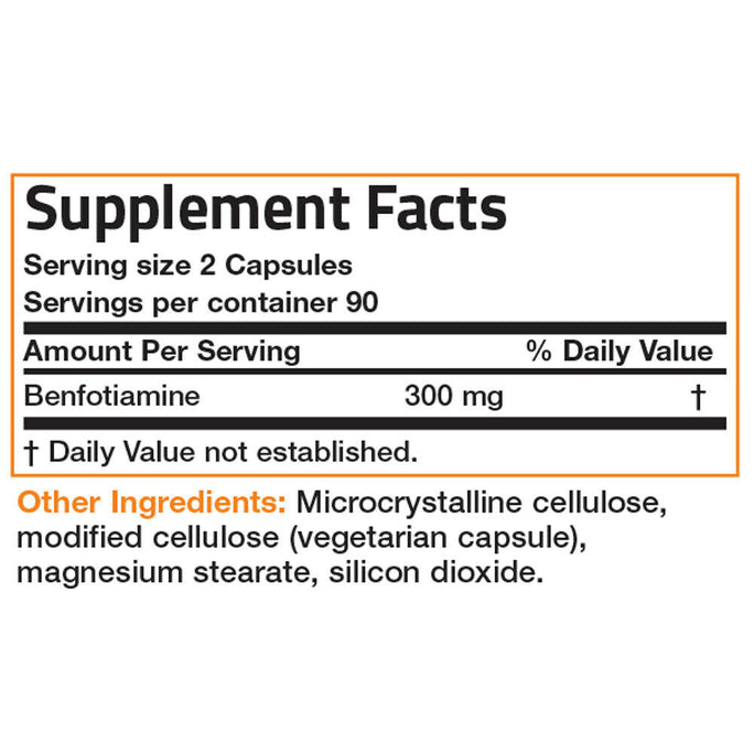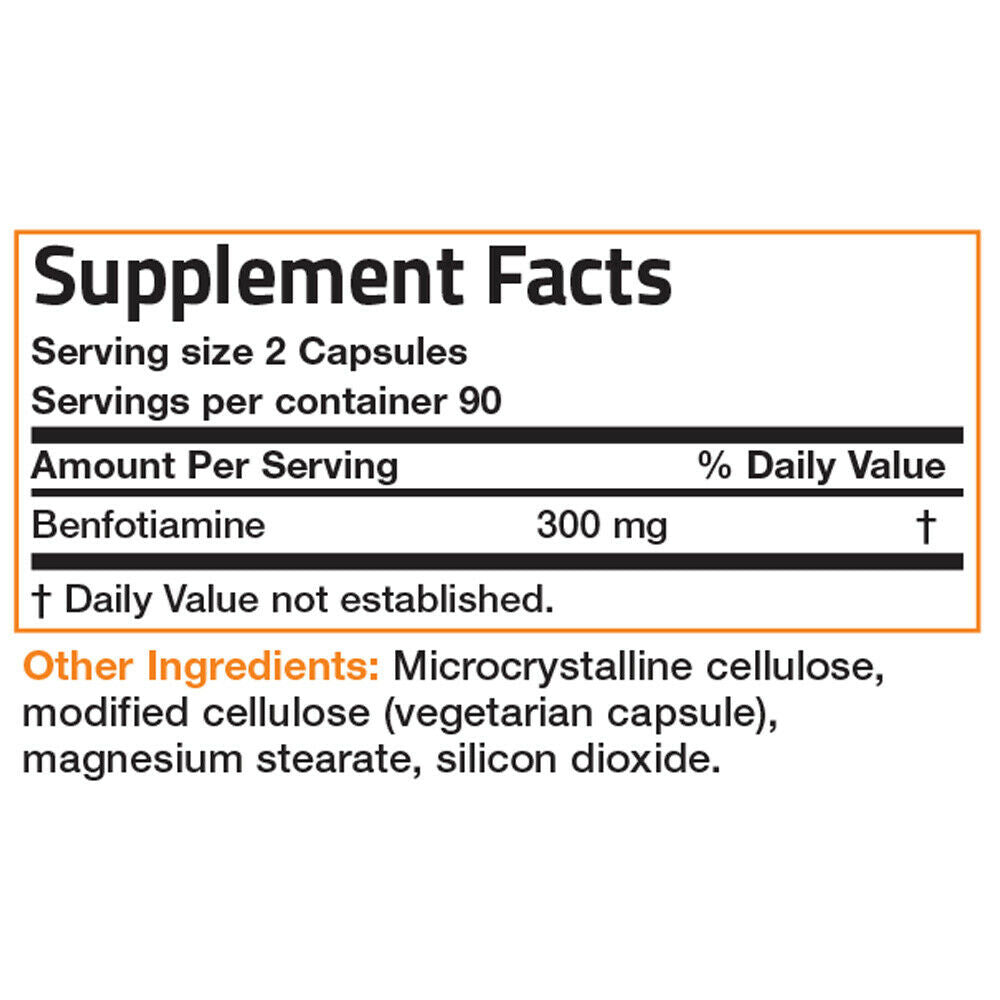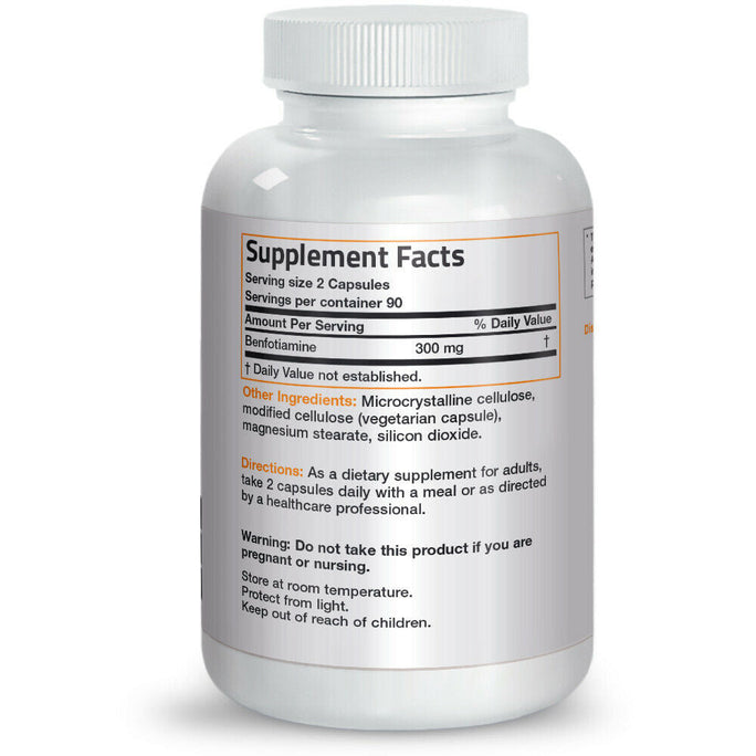 Bronson’s Benfotiamine is a vegetarian supplement that delivers 300 mg. of pure, pharmaceutical-grade Benfotiamine per two-capsule daily serving.
