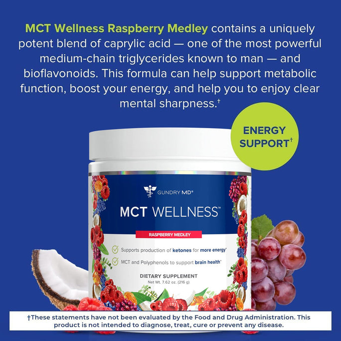 - ENHANCE MENTAL CLARITY: Gundry MD MCT Wellness Raspberry Medley contains a uniquely potent blend of caprylic acid — one of the most powerful medium-chain triglycerides known to man. This formula has been found to help support clear mental sharpness.
