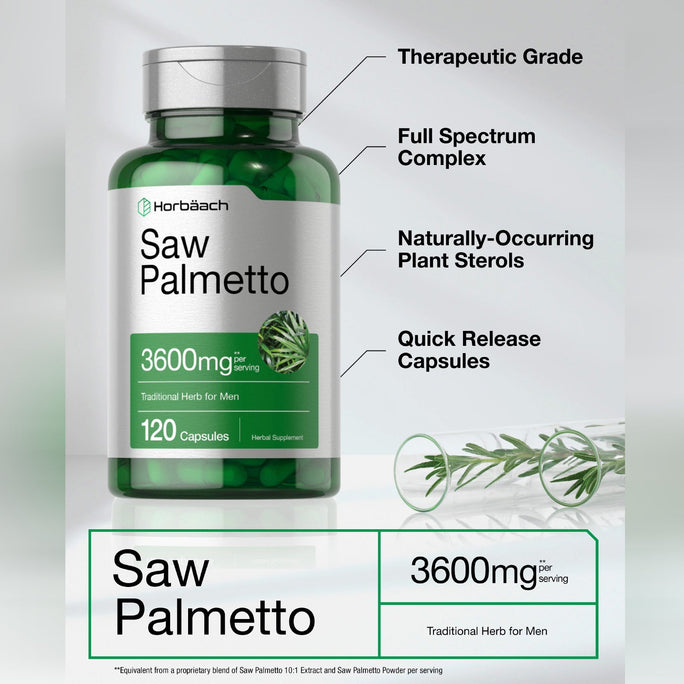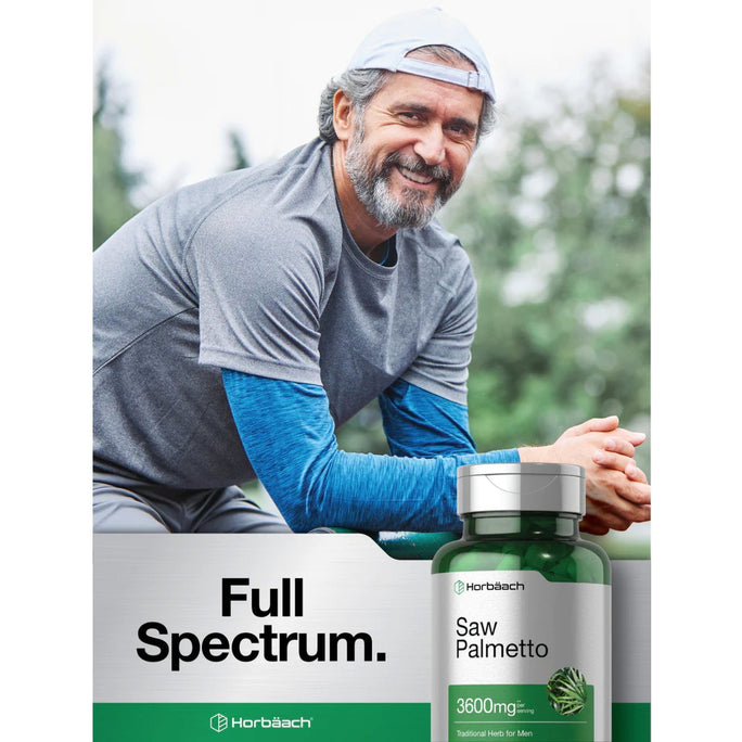 - Horbaach now carries a reliable source of Saw Palmetto that is incredibly potent. Our scientifically designed formula offers a full spectrum complex containing the equivalent of 3600 mg per serving of this Men’s Wellness herb. Our capsules are Gluten-Free and contain no Artificial Flavor, Artificial Sweetener or Preservatives. Promote strong herbal nutrition by testing out our natural Saw Palmetto Formula today!