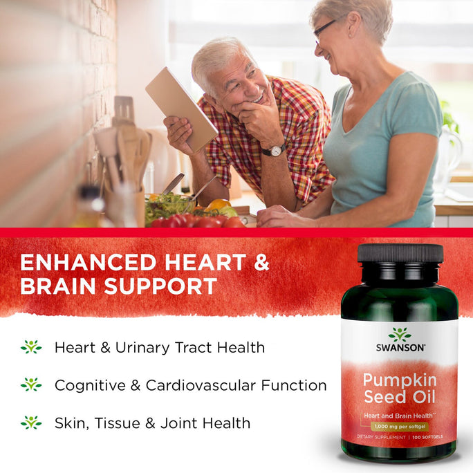 Swanson Pumpkin Seed Oil Brain Health Cardiovascular Support High Bioavailable Essential Fatty Acids (EFAs) Combination Herbal Supplement 1000 mg 100 Softgel Capsules